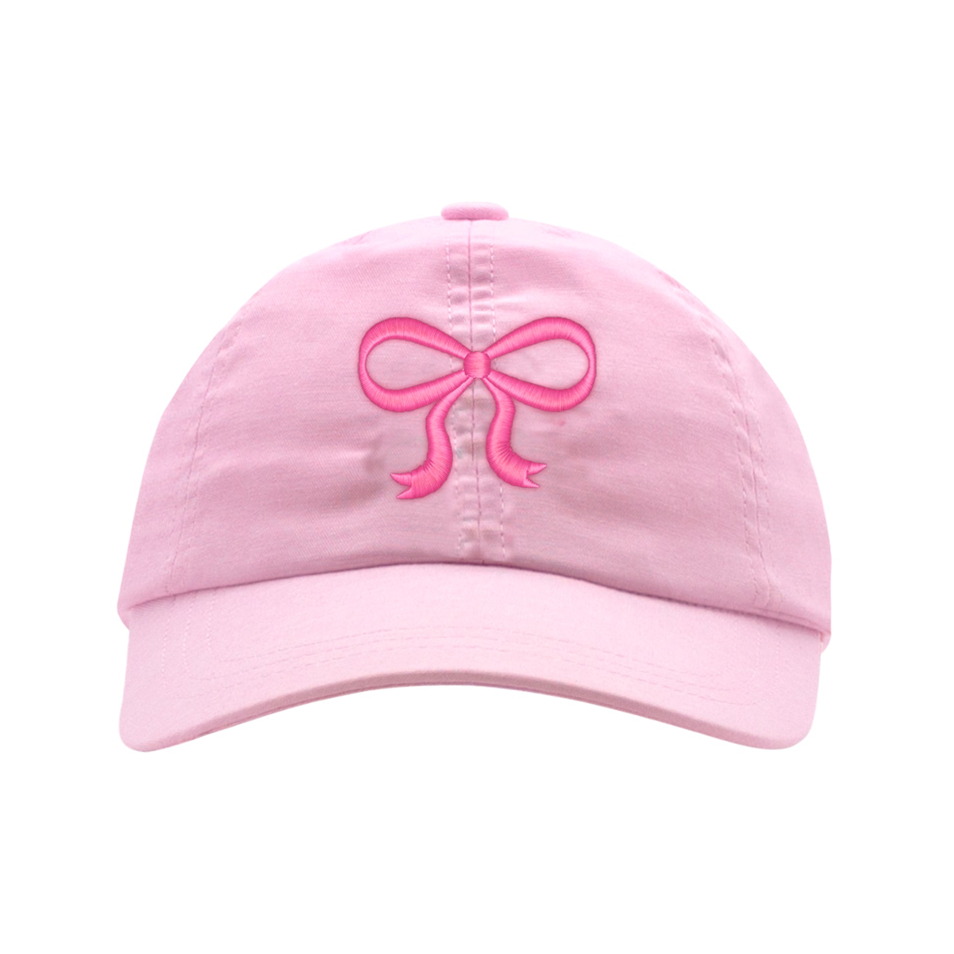 Bow Embroidered Pink Chambray Hat with Add-a-Bow